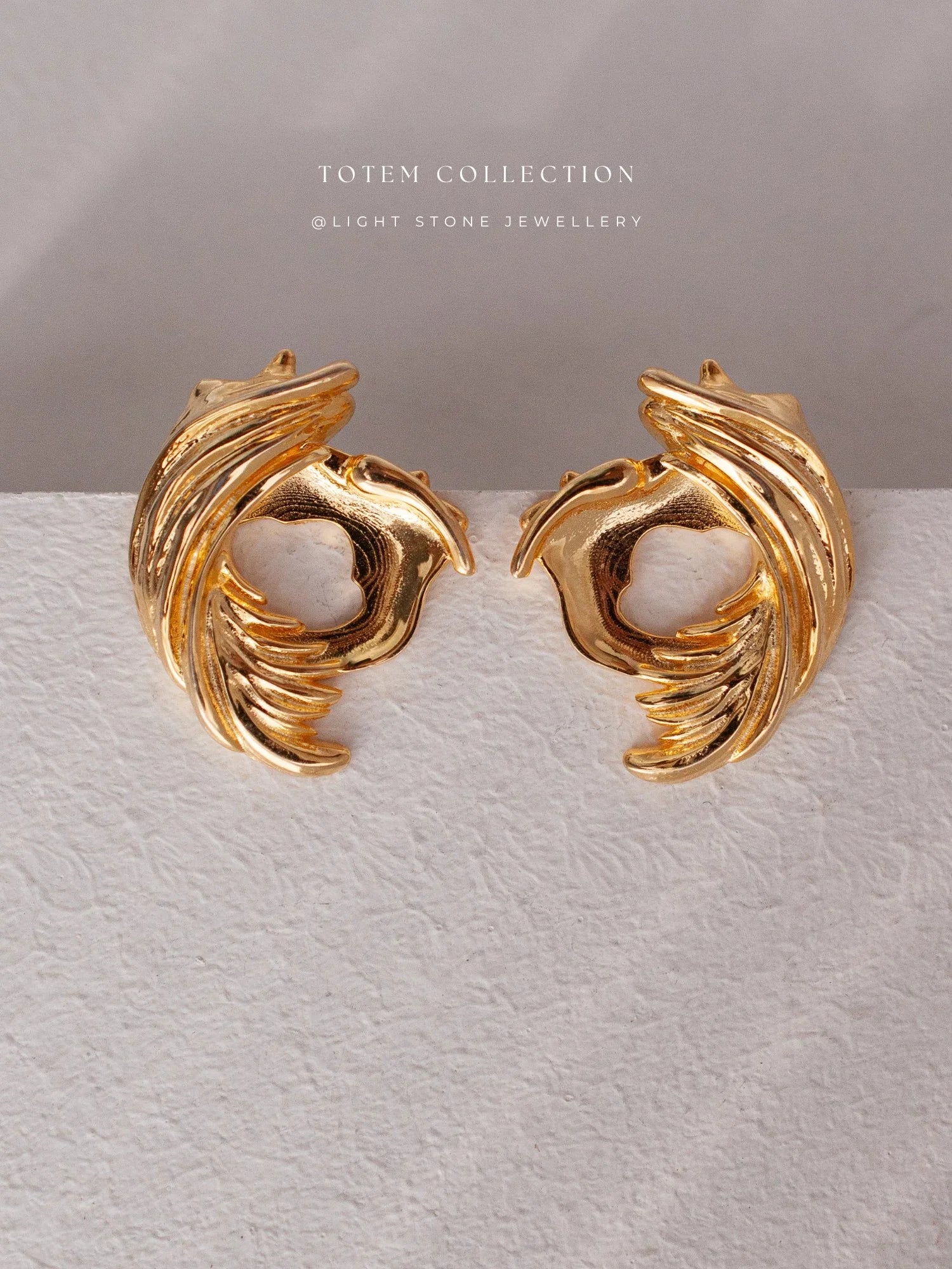 This pair of ear studs transforms the phoenix feather motif into an ascending spiral—each line curving upward with soft geometry and a rhythm that moves from center to edge.